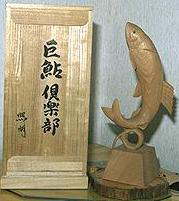 パソコン通信NIFTY-Serve ffishf清流 (鮎釣会議室)に、昨年8月22日に釣ったアユを登録していたところ、自分の鮎が優勝したとの事で写真の素晴らしい、仏師(照明作)の鮎彫り物、巨鮎トロフィ−が届きました。
