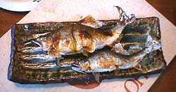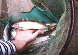 大倉釣具店釣り大会に参加の為、AM7:00に登録に行く受け付けがAM:600 写真の場所で囮を送るが・・釣れません 一匹釣ったので、囮込み3匹で検量できるので止めようかと思ったが 休憩後2時ごろ検量24位でした、19位がまの竿だった・・残念(;_;) -------------------------------------------------------------------------------- 31日夜から友釣り専用区にも網が入ります、その前に竿でも出してみ この場所は、駐車場の車の間から釣るので、囮をセットするバケツと引 囮をセットし川に放り投げる、囮はどうにか泳いでいる その後入れ掛り状態で掛かるが、駐車場の車の間で取り込むのは厄介で 予備竿に変更後、アタリが鈍くなりたのでイカリに変更、ぼちぼち掛か 友人の寿司屋さんに持っていって、鮎寿司を造ってもらう(写真)