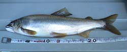 やって来たのは長目半島津久見側で車で3時間、海は澄みきりきれいな場所です。防波堤釣り禁止の立て札がありましたが、漁師さんに了解を得て防波堤の先端に腰を下ろし仕掛け準備、狙いは女房がゼンゴ、私はメイタ狙いでしたが釣り始めると15cm級メバルが竿をブルブルと楽しませてくれます。しかしすぐに10cm前後と型が小さくなり、木っ端グロもわんさか湧いて釣りにならず場所移動・・ 数カ所場所移動しのものの結果は同じでお昼で納竿、釣果は15cm級メバル23匹、20cm級ベラ数匹、女房の釣った木っ端グロ数知れずでした。
